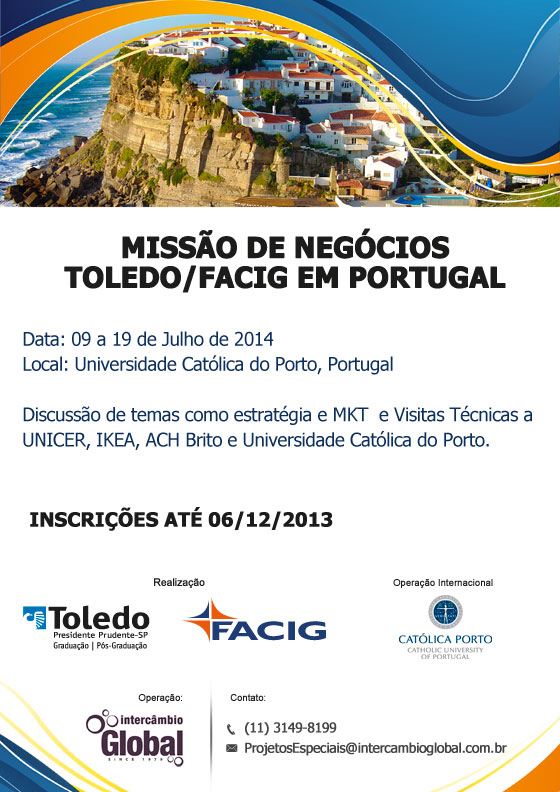 oledo Presidente Prudente, além de interessados, podem se inscrever para o Programa de Extensão Internacional – Missão de Negócios Toledo em Portugal.