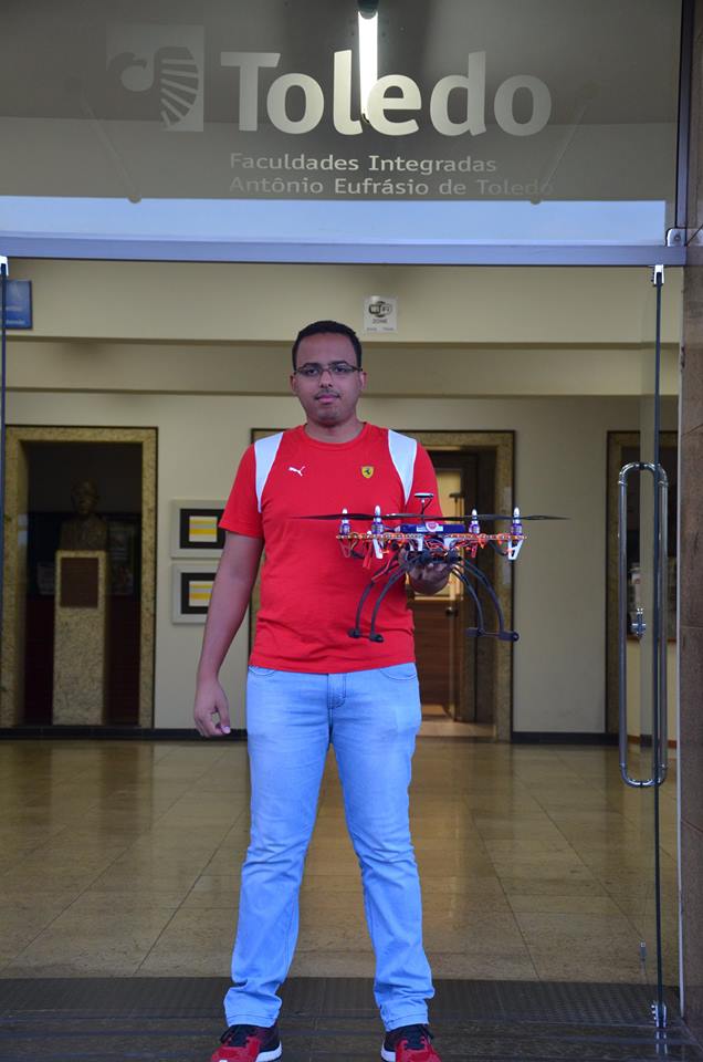 Quando Allan Villa (foto), aluno de Sistemas de Informação da Toledo, opera seu drone, todas as atenções ficam voltadas a ele, cuja criação é mais conhecida como VANT – Veículo Aéreo Não Tripulado.