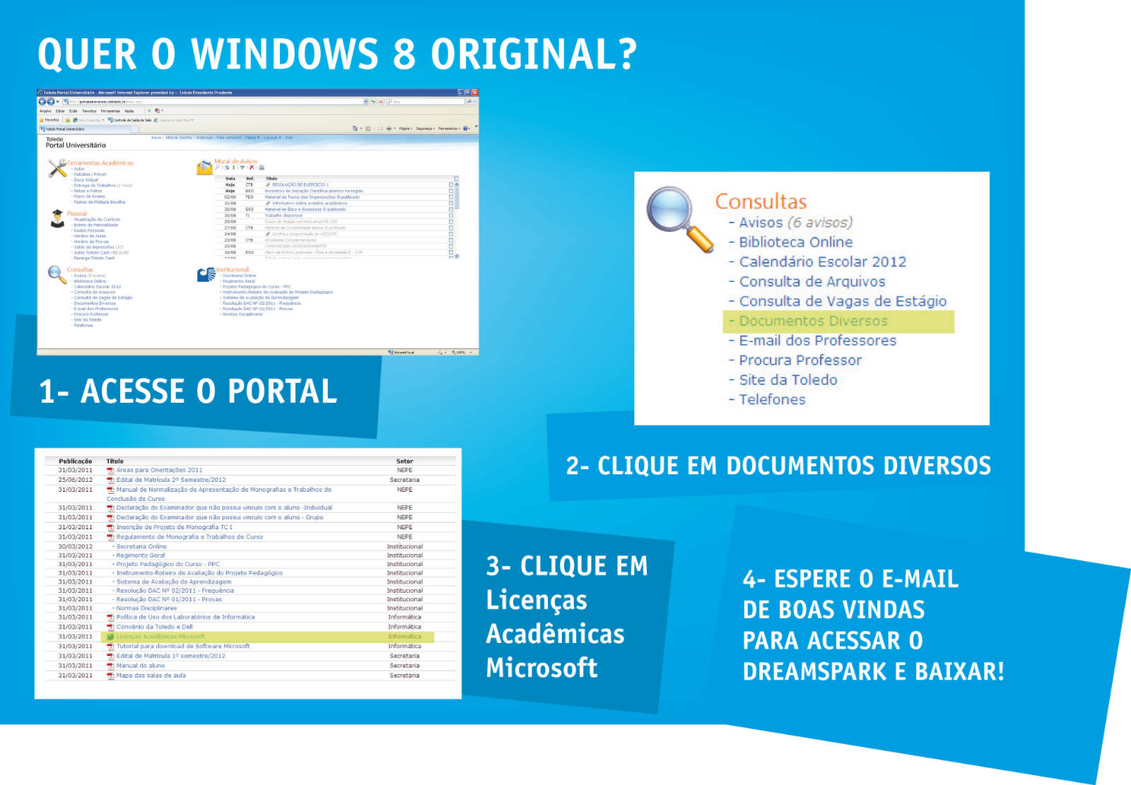 Os alunos da graduação e da pós-graduação da Toledo Presidente Prudente já podem fazer de maneira gratuita, o download do sistema operacional Windows 8 Professional.
