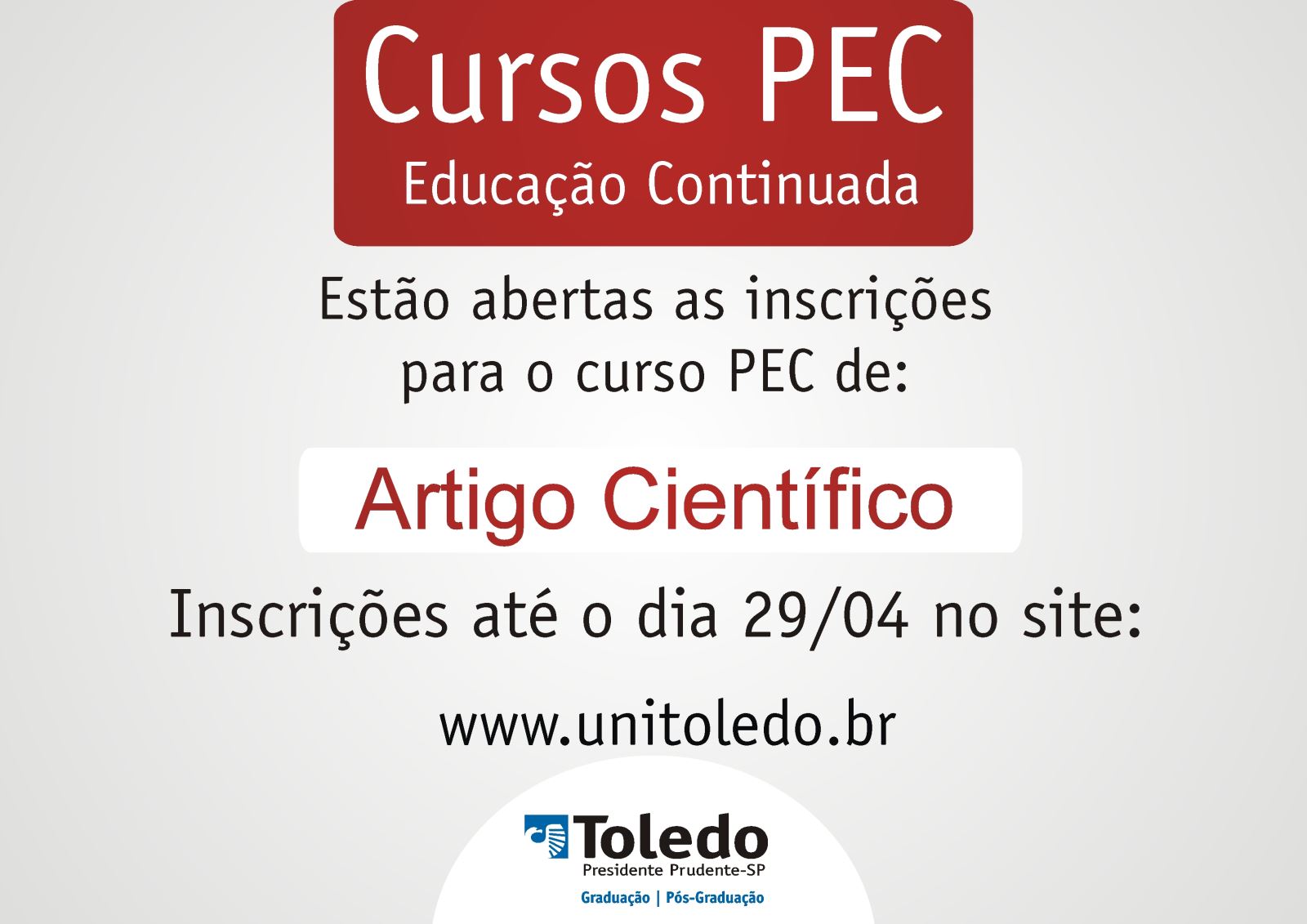 A Toledo Presidente Prudente, por meio do Programa de Educação Continuada (PEC), está com inscrições abertas para o curso Artigo Científico até o dia 29 de abril ou enquanto houver vagas.