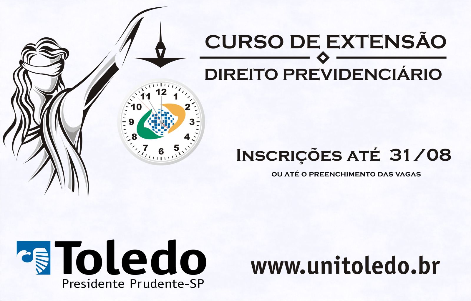 A Toledo Presidente Prudente, por meio do Programa de Educação Continuada (PEC), lança o curso de Extensão em Direito Previdenciário. O curso, que é voltado a profissionais e universitários está com inscrições abertas até o dia 31 de agosto.