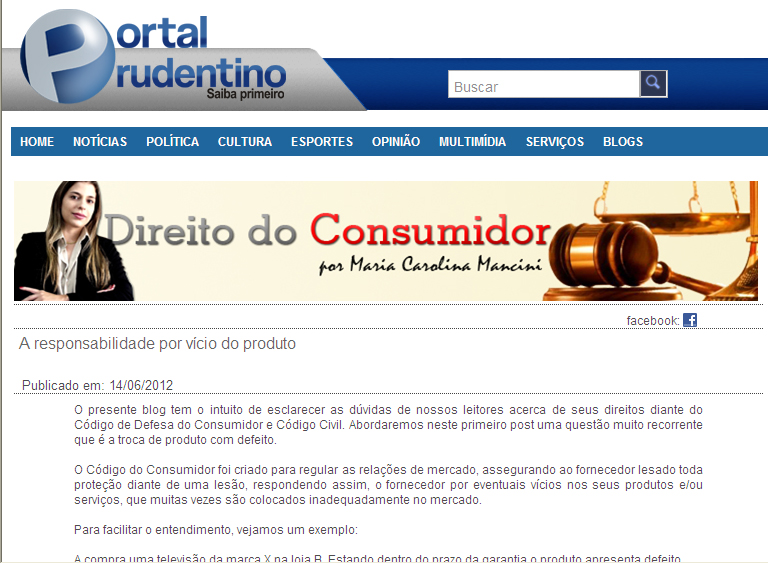 blog ‘Direito do Consumidor’, assinado pela egressa da Faculdade Toledo Presidente Prudente, Maria Carolina Mancini.