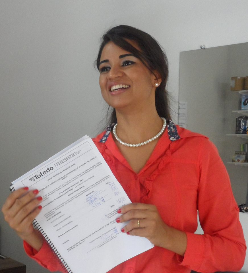 Aline Aparecida Novais Silva (foto) formou-se em Direito na Toledo Prudente em 2014 e já atua como estagiária docente na Toledo Prudente. Ela teve material aprovado e conta que o produziu em parceria com o coordenador do curso de Direito, Sérgio Tibiriçá Amaral, especialmente para este evento.