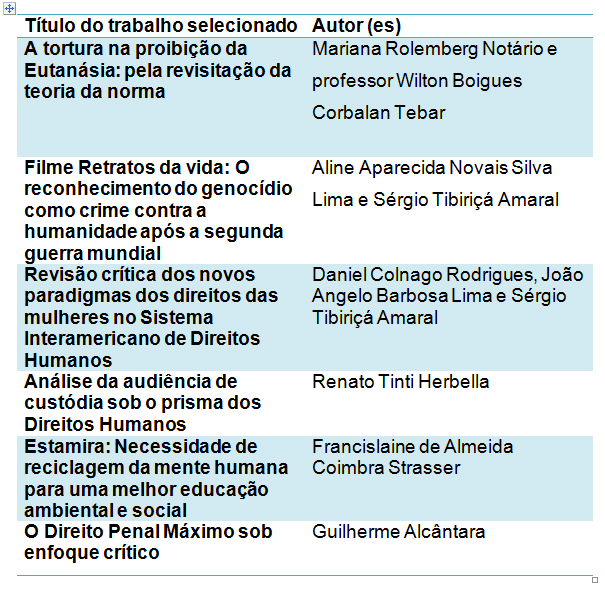Veja os artigos selecionados e seus respectivos autores da Toledo Prudente