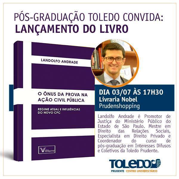 Lançamento – “O ônus da Prova na Ação Civil Pública” será lançado em Presidente Prudente no dia 3 de julho, às 17h30, na Livraria Nobel, no Prudenshopping. A entrada no recinto é gratuita.