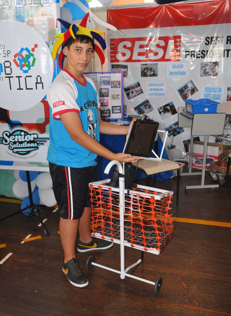 O trabalho desenvolvido pelos alunos foi um carrinho de supermercado leve, dobrável e que cabe em qualquer lugar acoplado com tablet e GPS com o objetivo de fazer com o que o idoso grave a lista das mercadorias que precisa comprar e também seja auxiliado na hora de ir e voltar do supermercado para casa.
