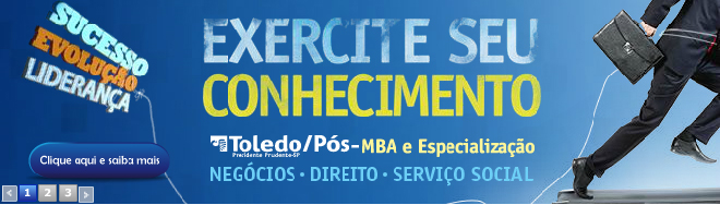 Estão abertas as inscrições para os cursos de pós-graduação – Especialização e MBA (Master of Business Administration) para início no primeiro semestre de 2013 na Toledo Presidente Prudente.