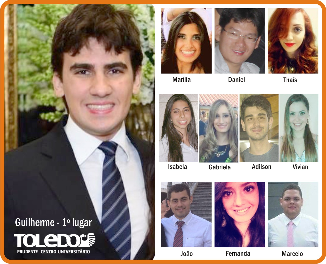 Completam a lista de aprovados os alunos da Toledo Prudente: Marília Dellagnesi Medeiros (3ª colocada), Adilson Venâncio de Carvalho Júnior (4º colocado), Gabriela Cristina Matheus de Menezes (5ª colocada), Daniel Akira Koh (6º colocado), Isabela Trombin Paschuini (7ª colocada), Fernanda Gasque Coutinho (8ª colocada), Vivian Flores Branco (9ª colocada), Marcelo Luciano Pereira da Silva Batista Falcão (10º colocado), João Victor Mendes de Oliveira (11º colocado) e Thaís de Andrade Medeiros (13ª colocada).