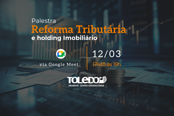 O Grupo de Estudos sobre as propostas e proposições para a tributação 4.0, ministrado pelo coordenador do curso de Direito Lucas Pires Maciel, realizará uma palestra exclusiva online intitulada “Reforma Tributária e Holding Imobiliária”. Será uma excelente oportunidade para adquirir conhecimento sobre o tema com o especialista no assunto, o Dr. Gustavo Martinez Borges, egresso da Toledo Prudente.